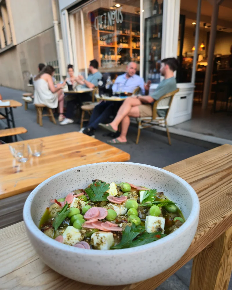 Chez Nous Paris, mêle cuisine de saison et vins naturels dans une ambiance chaleureuse.